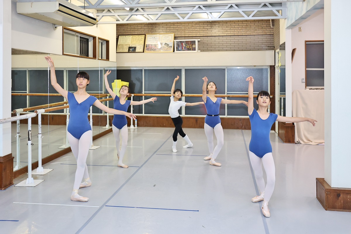 バレエのレッスンは柔軟から始まり、バーレッスン、センターレッスンへと、全身の関節や筋肉をくまなく使い行われます。その毎日の地道なレッスンが美しくバランスのとれた身体を作るとともに強い精神力やまっすぐな心を育むと私共は考えています。
